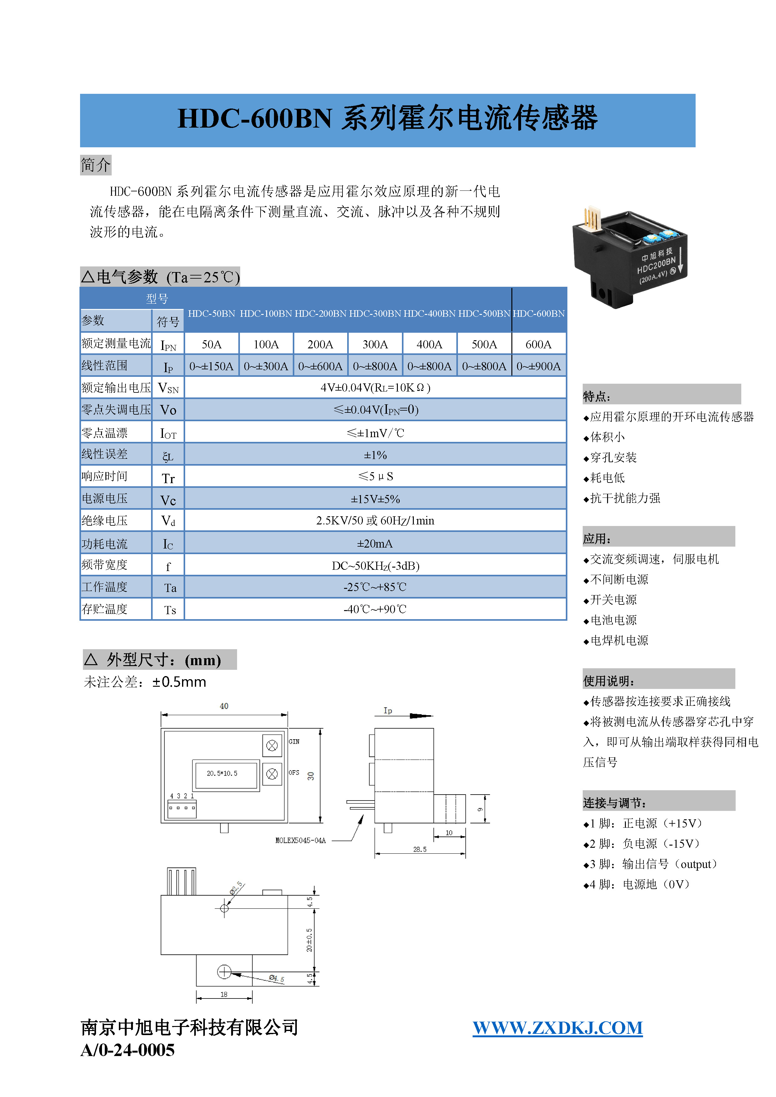 HDC-200BN系列霍爾電流傳感器是應(yīng)用霍爾效應(yīng)原理的新一代電流傳感器,能在電隔離條件下測量直流、交流、脈沖以及各種不規(guī)則波形的電流。